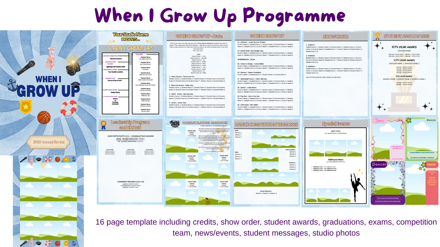 See below for shows and templates you can purchase including programme, show order templates, scripts and roles, music suggestions, and more....